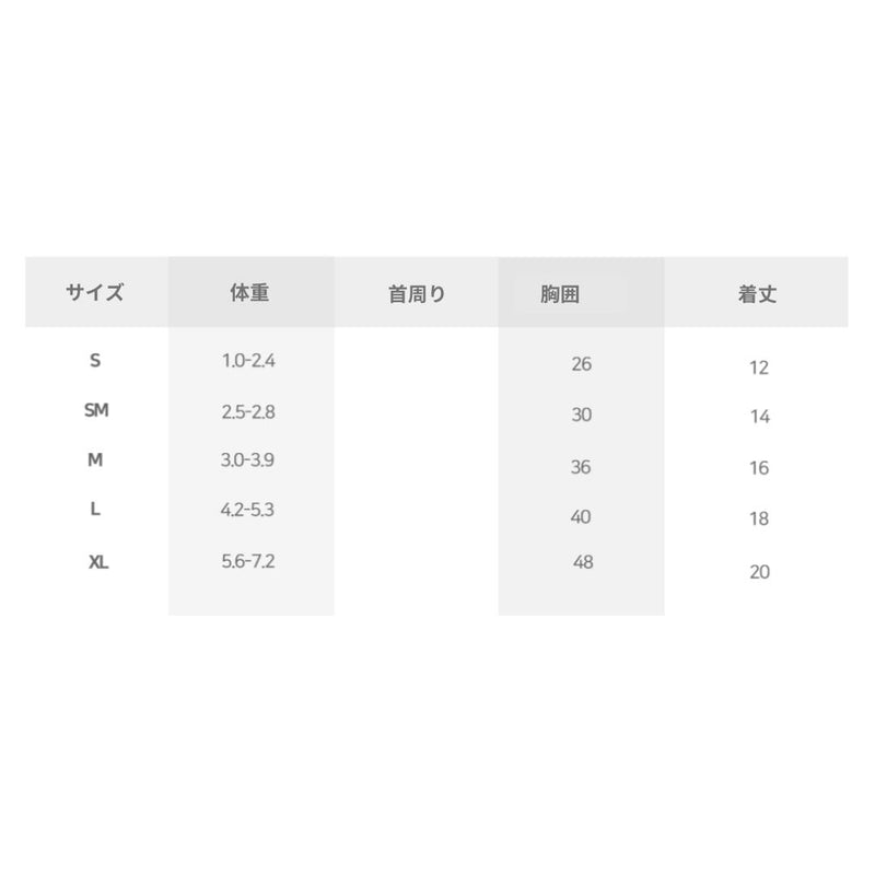 SMサイズ着用:2.7kg 胸囲 31cm 背丈 26cm