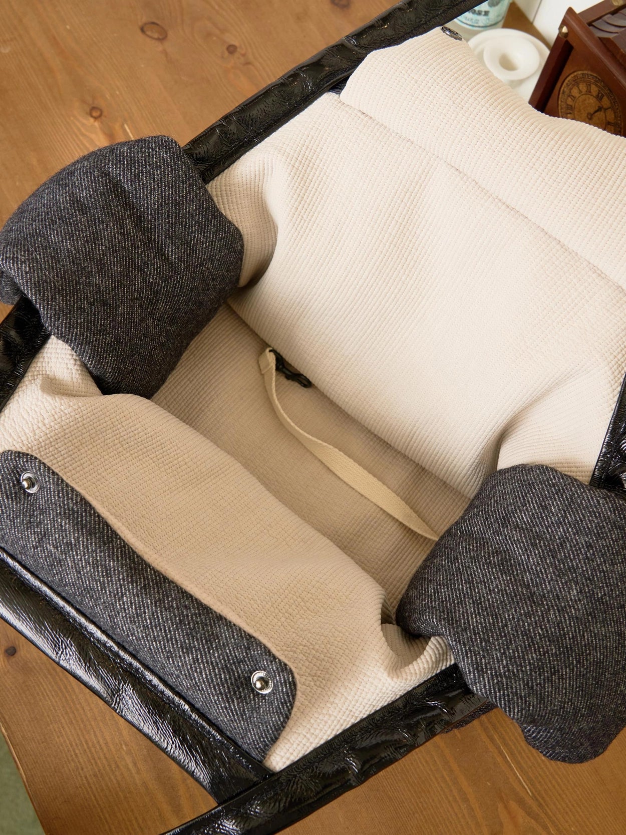 底面には汚れに強いブラックのナイロン・ヘビーツイル生地を配し、