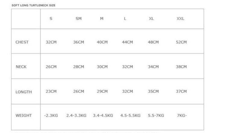 2XL: 胸囲 52cm, 首周り 38cm, 着丈 37cm, 体重 7kg-