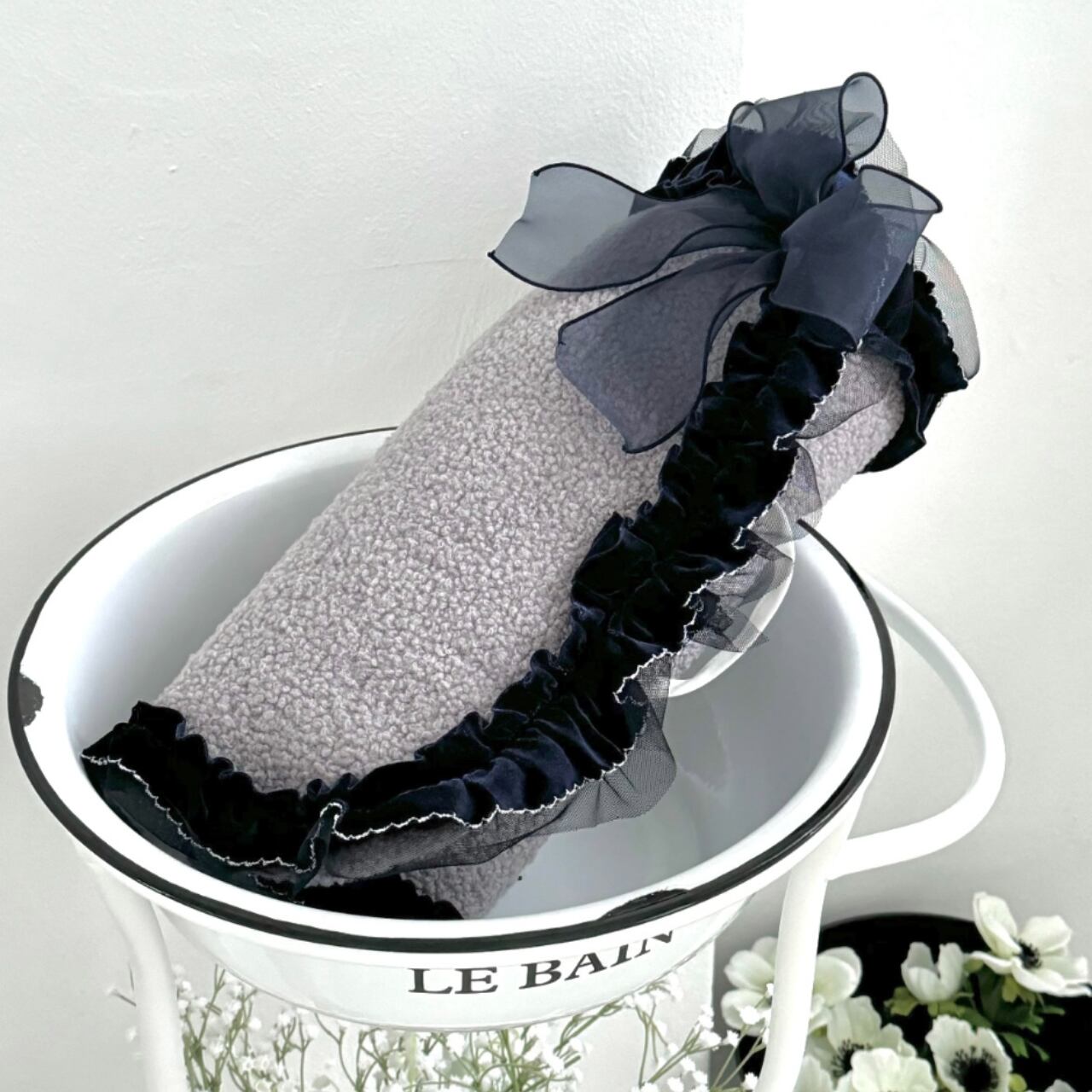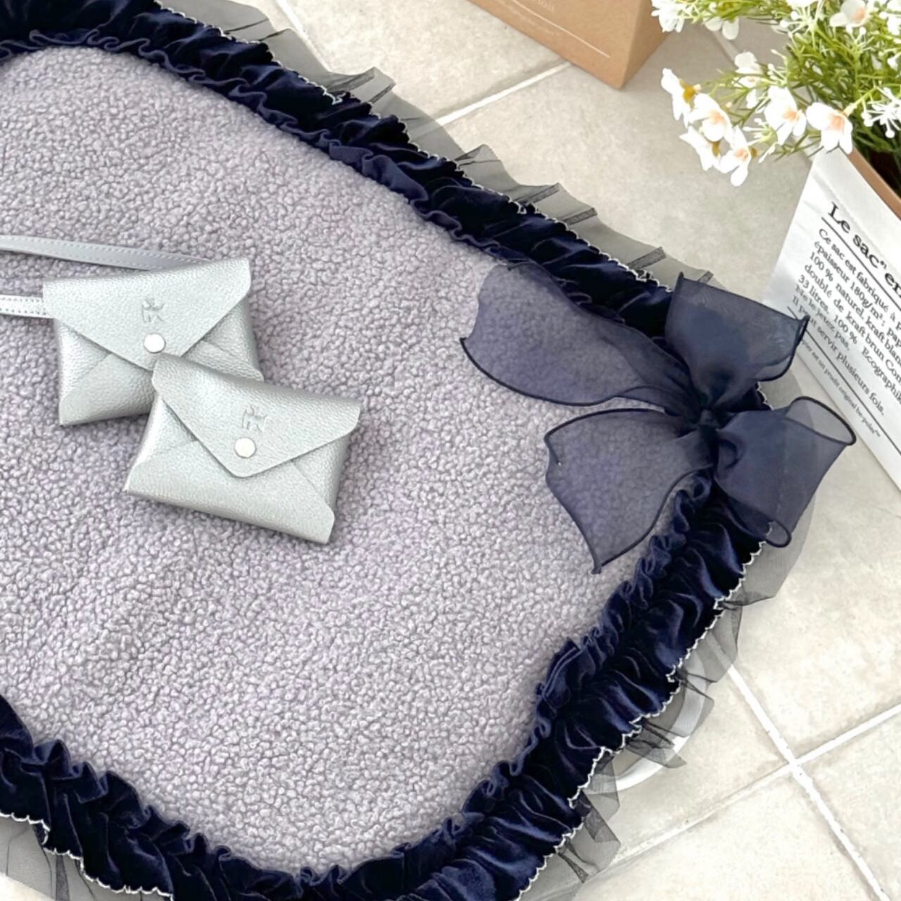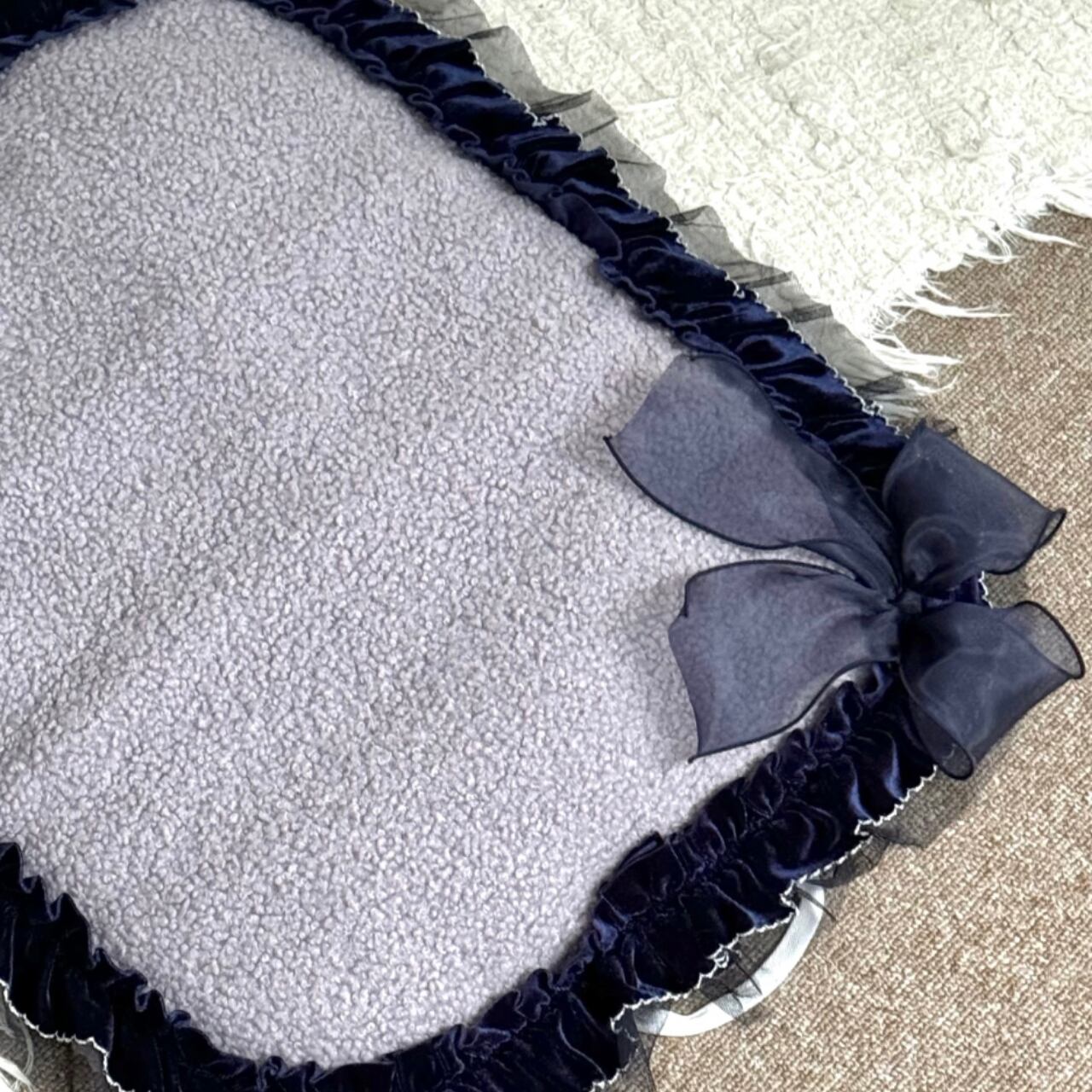 パープルグレー×ネイビーのベルベットレースが高級感のあるお散歩マット