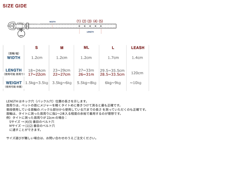 - 首輪の場合、使用中にわんちゃんたちが噛んだり、鋭いところに引っかかり途中で隙間が発生した場合は、使用を中止してください。