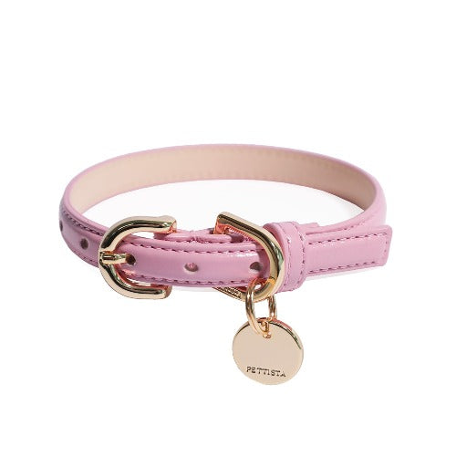 シンプルで上質なレザーカラーに、迷子札としても活用可能な刻印入り円形ペンダントを合わせたアイテムです。