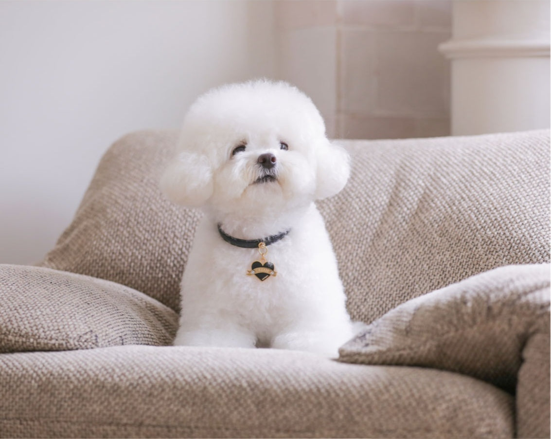 【表:わんちゃんのお名前 / 裏:飼い主さんのお電話番号】をご記入ください。