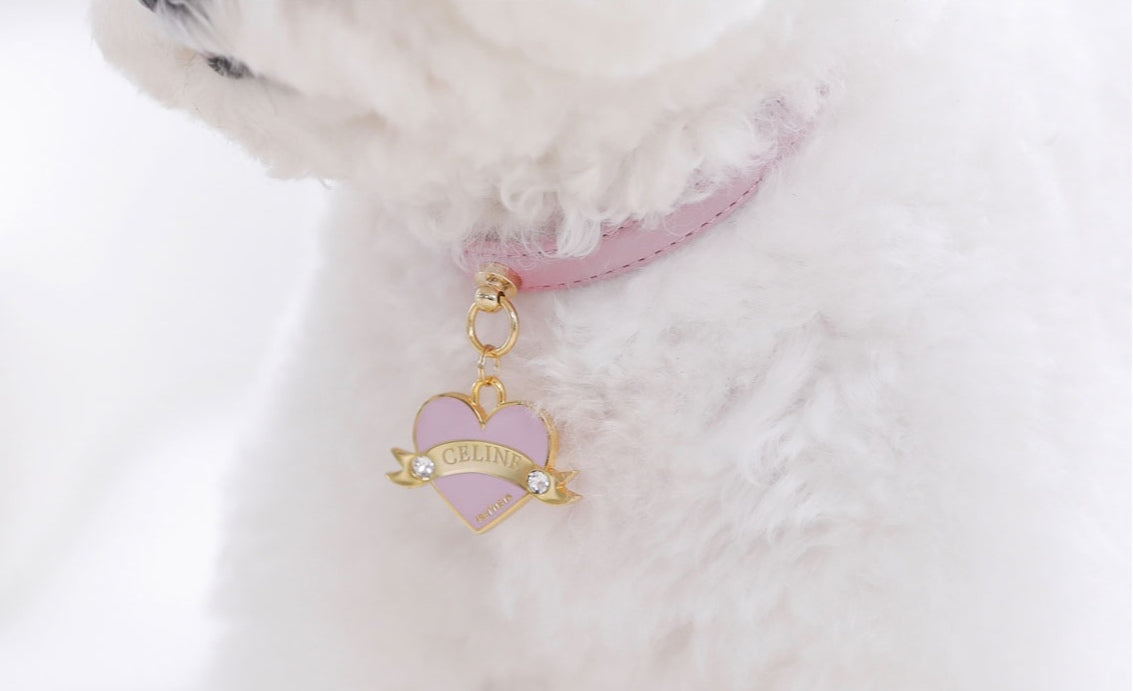 Bloom Collar × In My Heart Pendant【迷子札】 ボンボンピンク