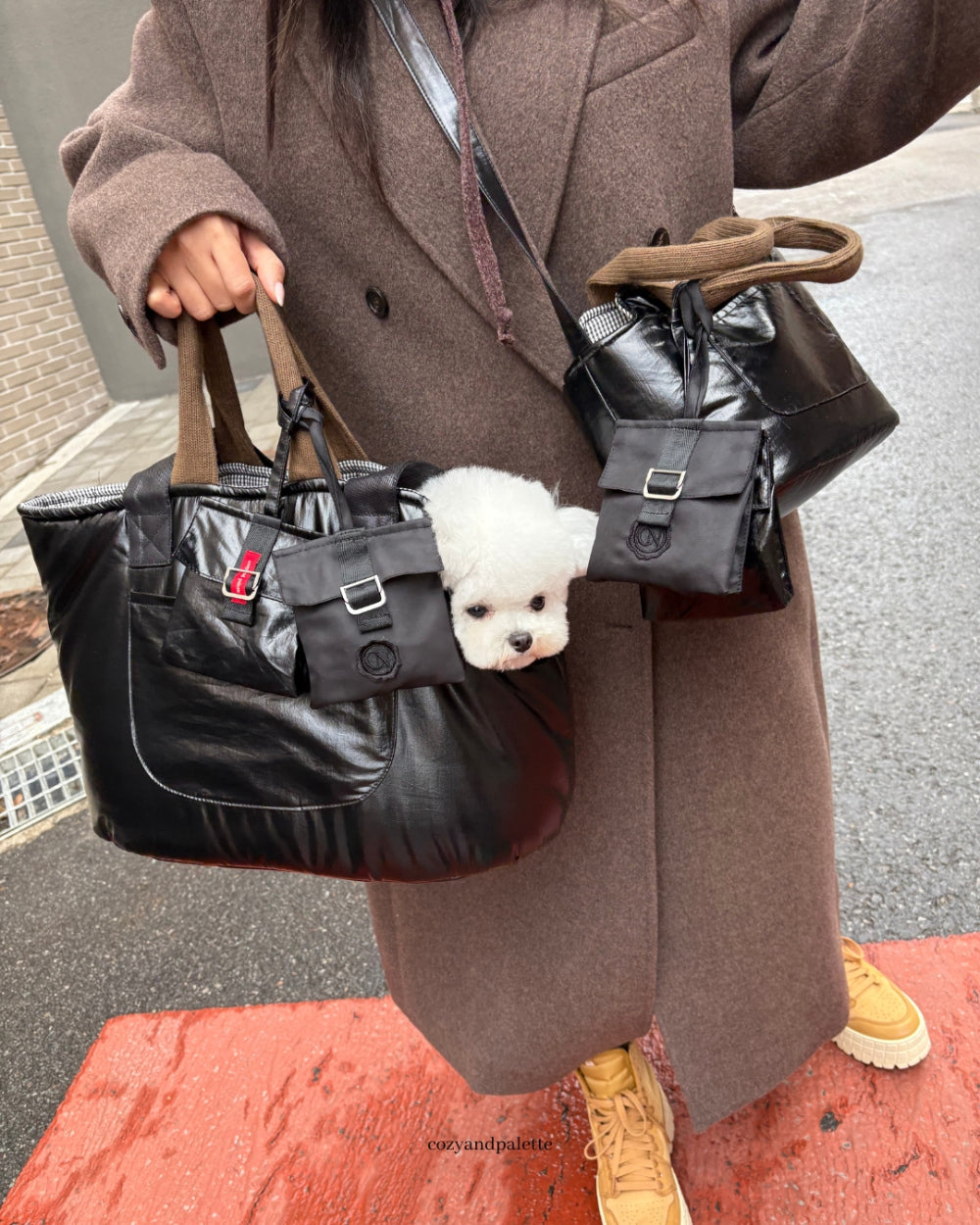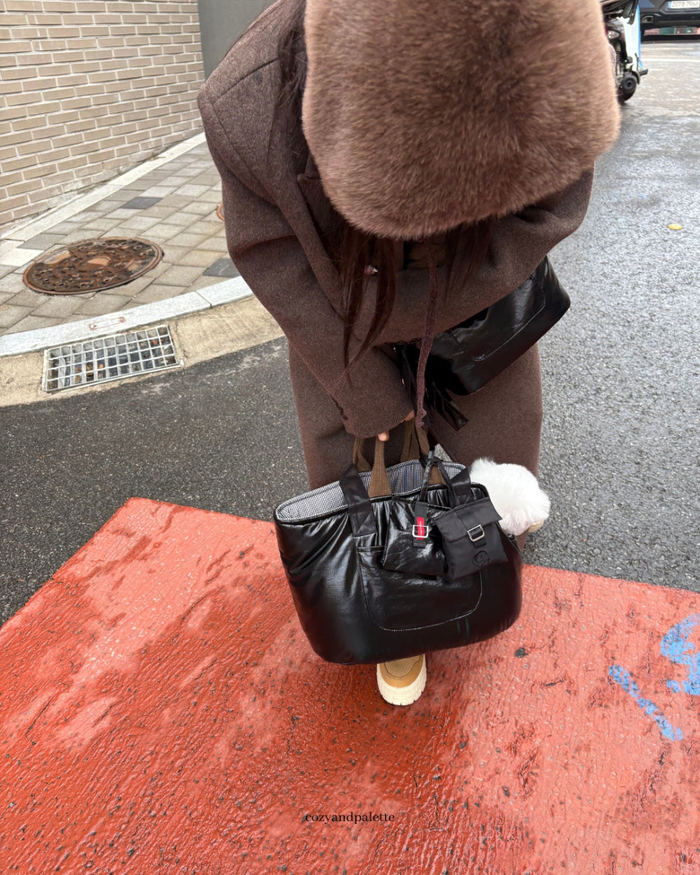 - 日常のお出かけやお散歩に使いやすいブラックで汚れや家庭用傷に強い光沢のある質感