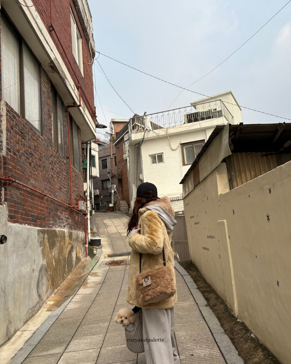 心地よいファーの質感が引き立つカラーで、冬ならではの温かみのある可愛らしい雰囲気のデザインです