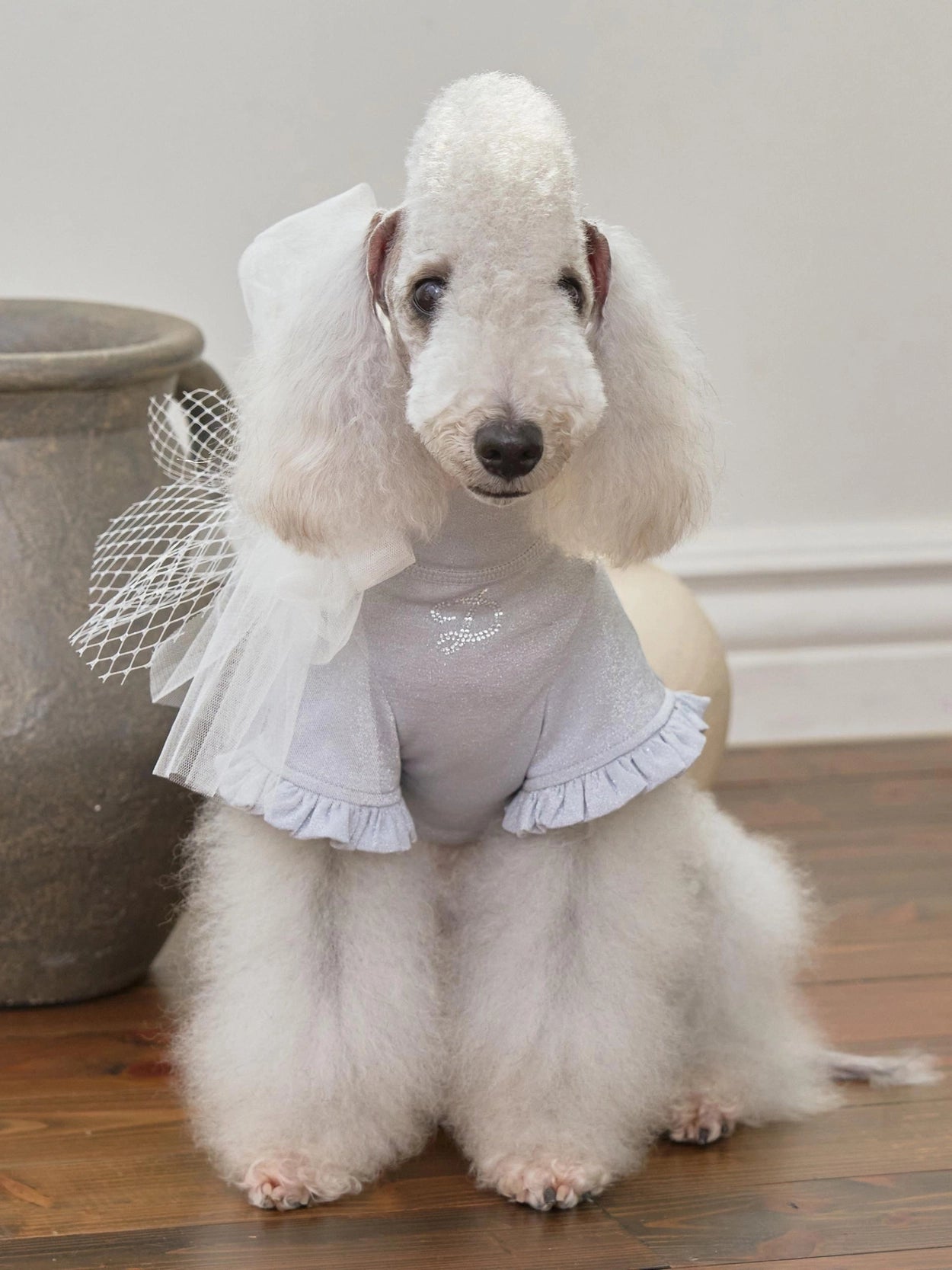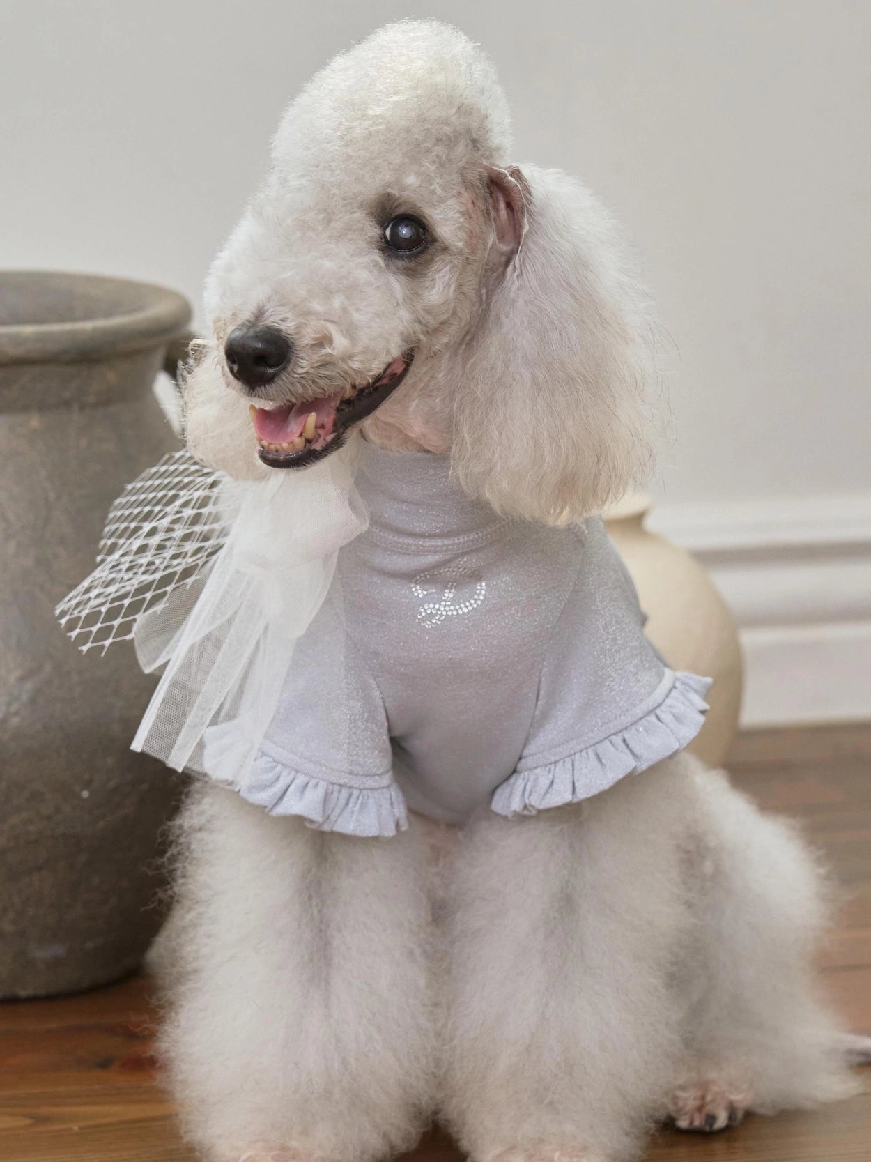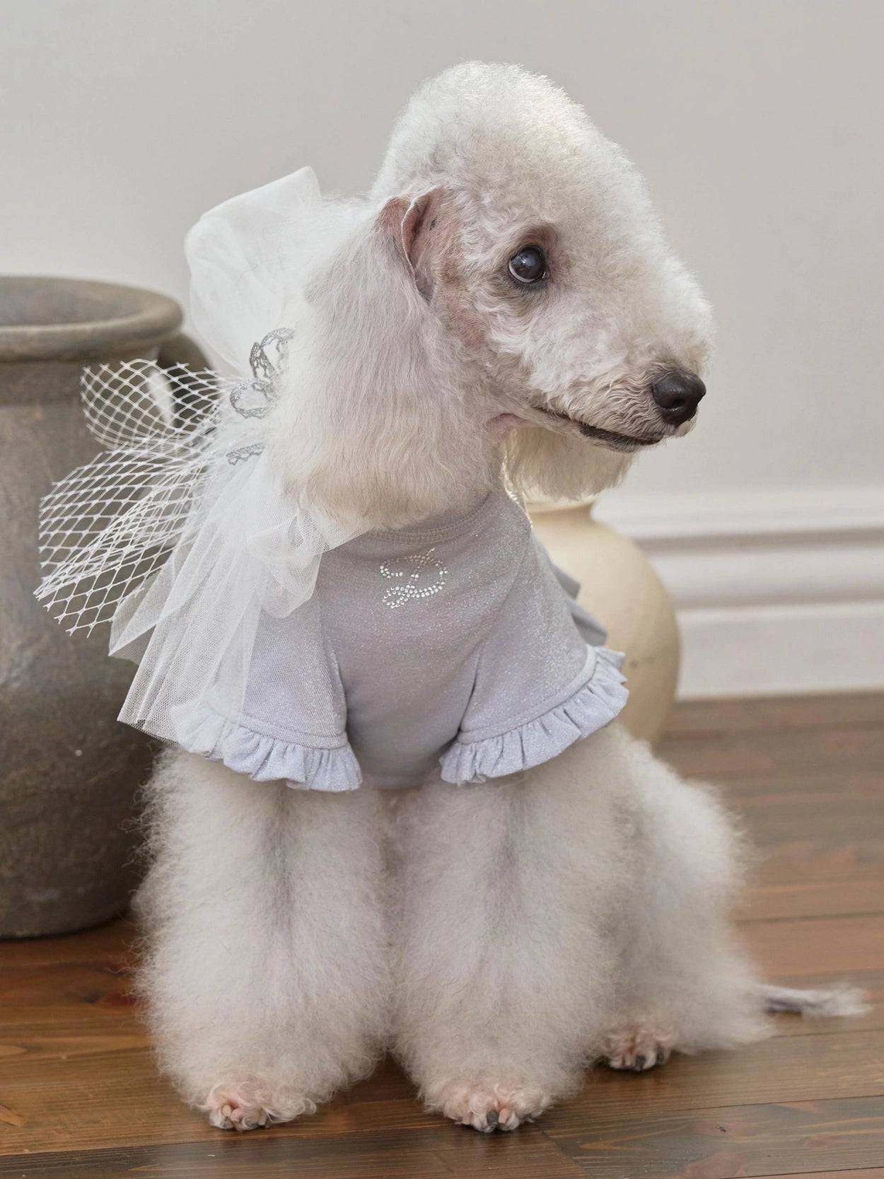 胸元には Design for Dog のイニシャルをクリスタルであしらいました