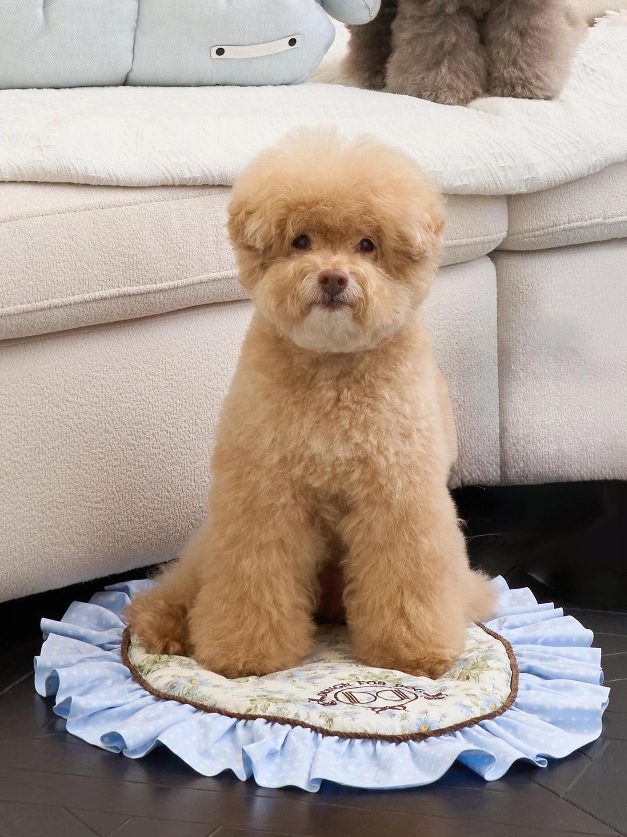 中綿をたっぷり入れてふんわり感を長くキープし、縁を囲む太めのベルベットリボンで耐久性と装飾性を高めました