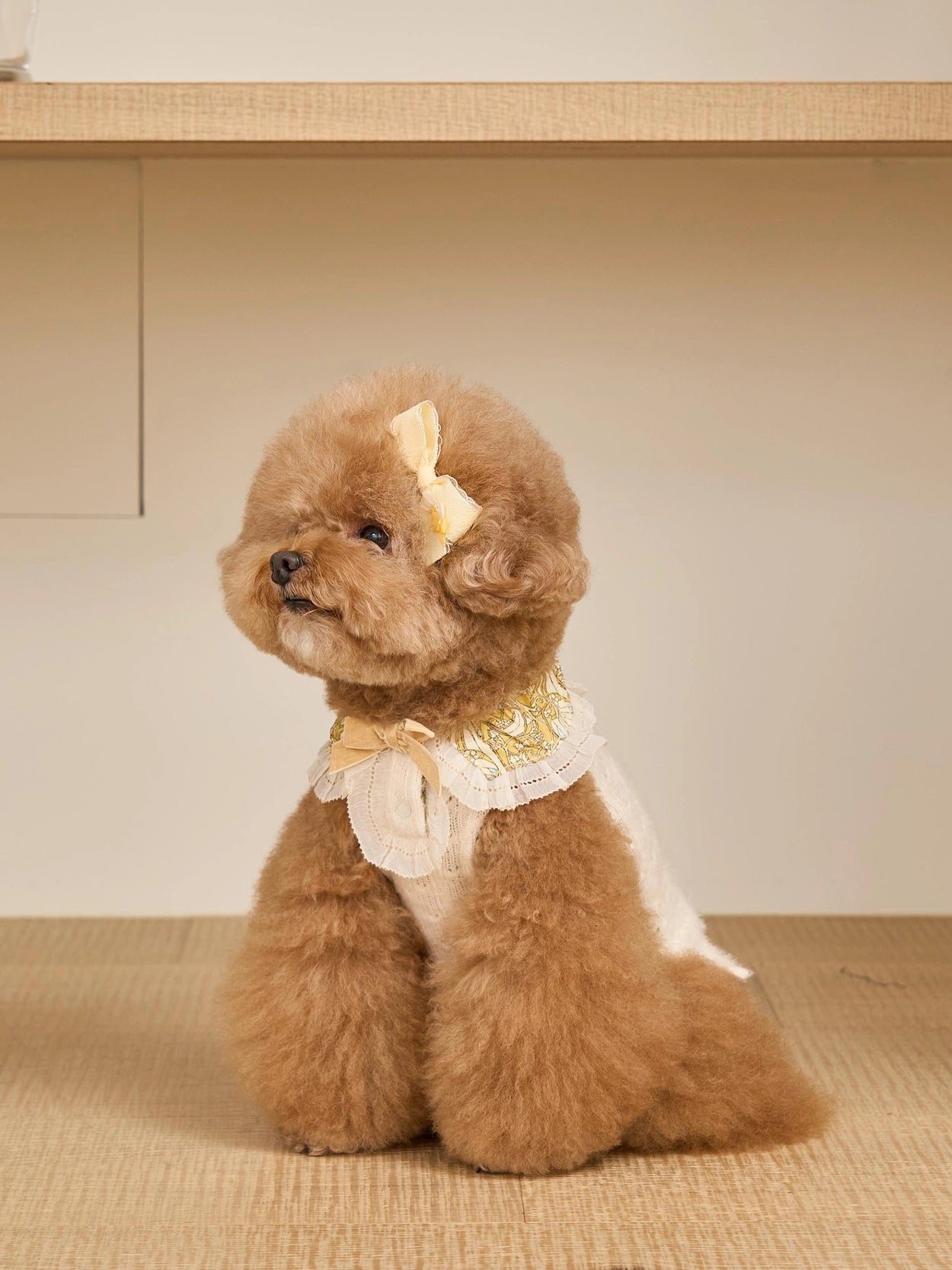 衿とホックの端にはボイルジュレースの刺繍を施し、