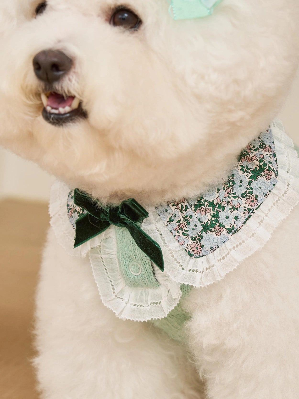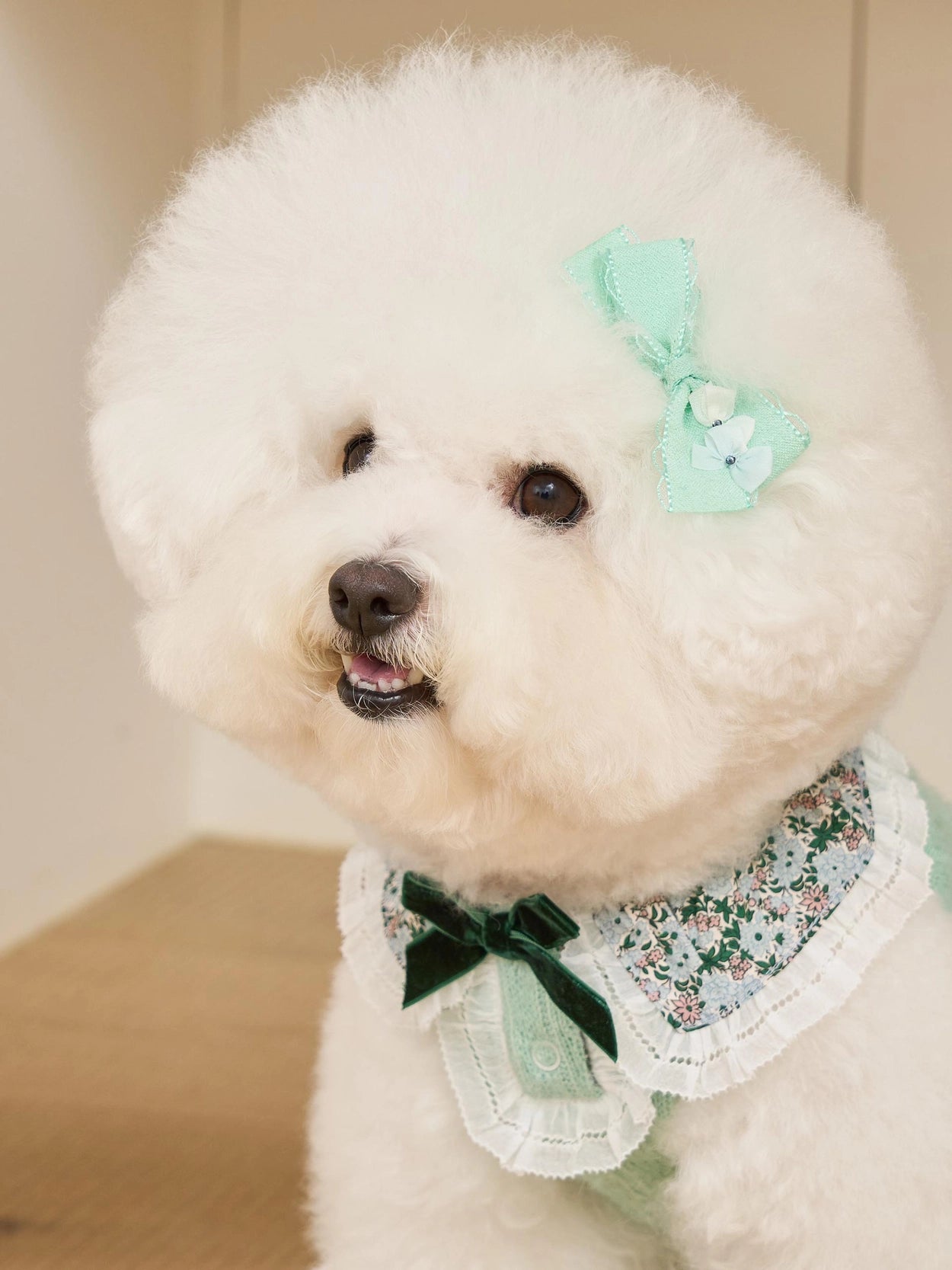 正面のベルベットリボン装飾もマッチしています