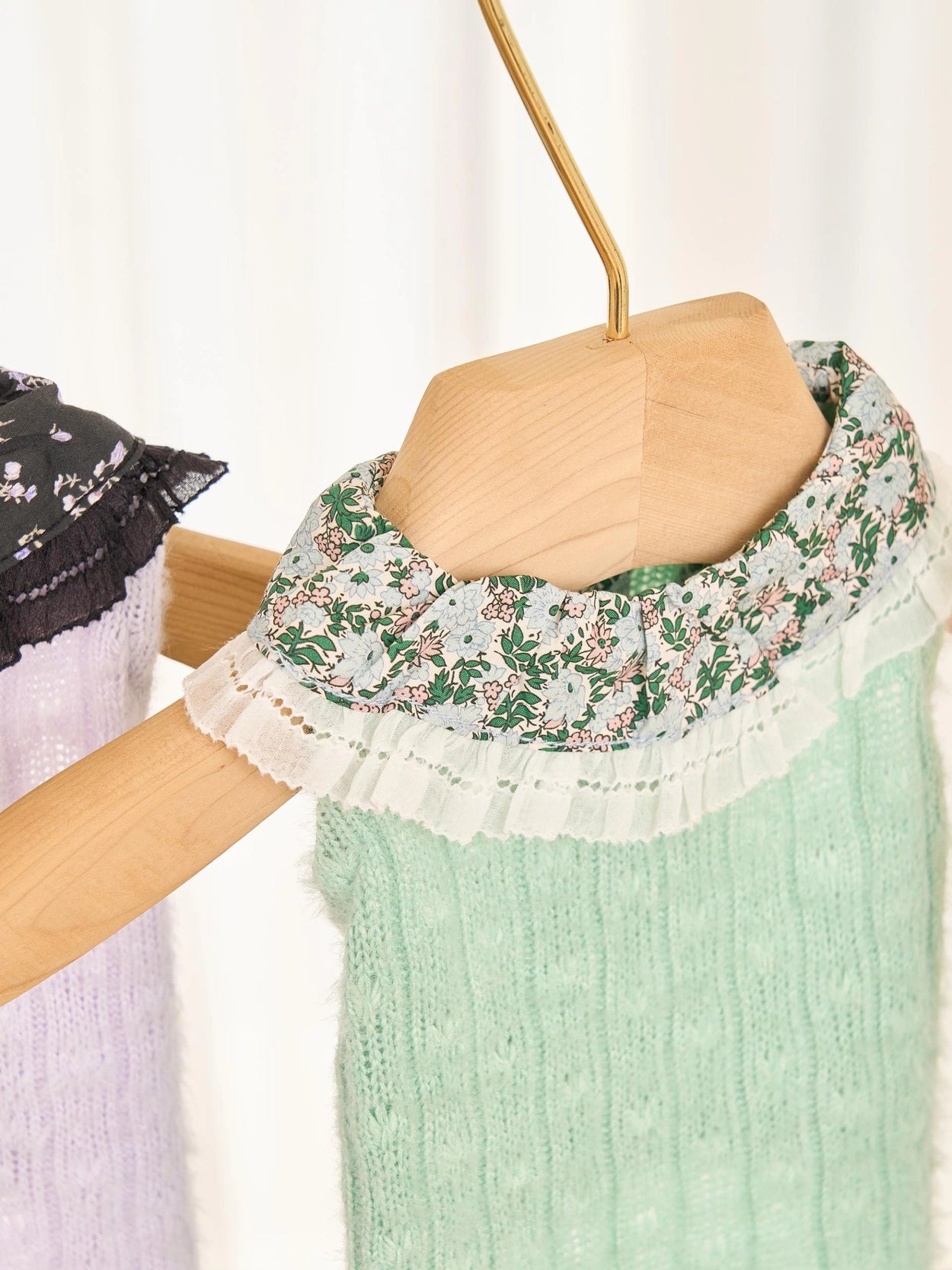 衿とホックの端にはボイルジュレースの刺繍を施し、
