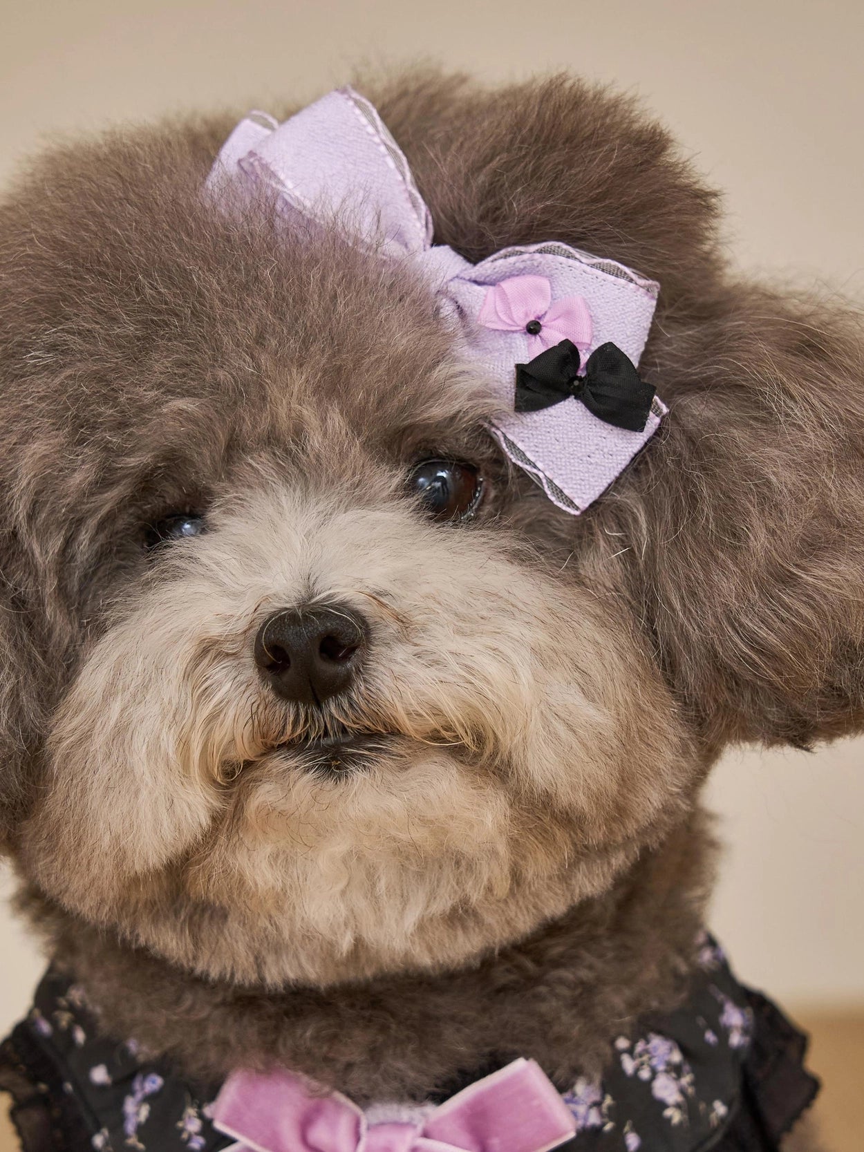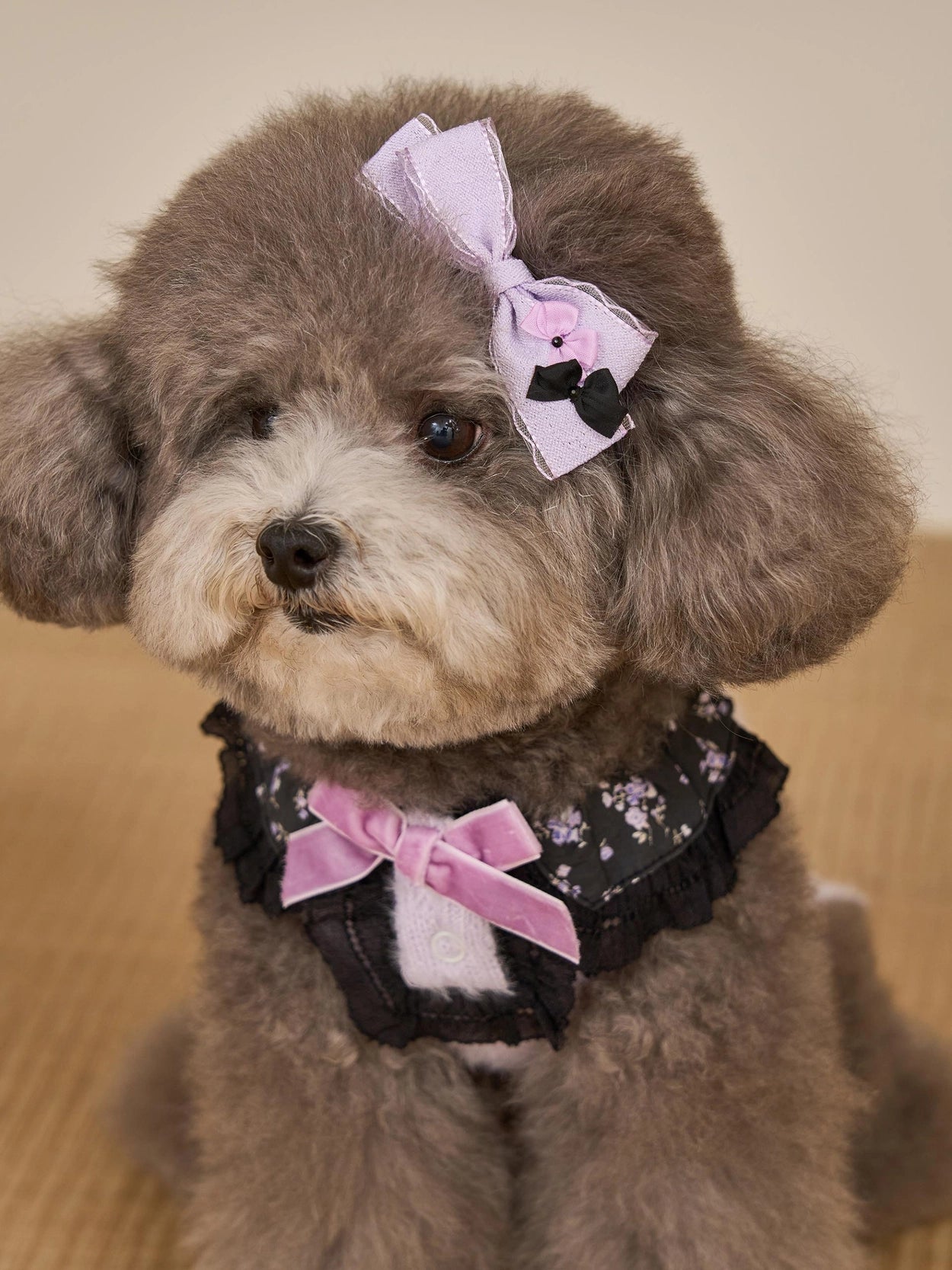 正面のベルベットリボン装飾もマッチしています