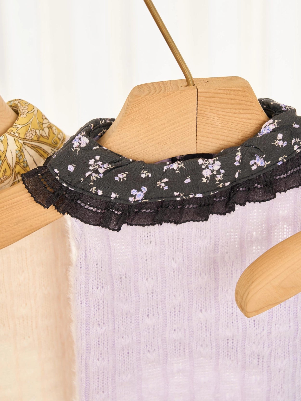 衿とホックの端にはボイルジュレースの刺繍を施し、