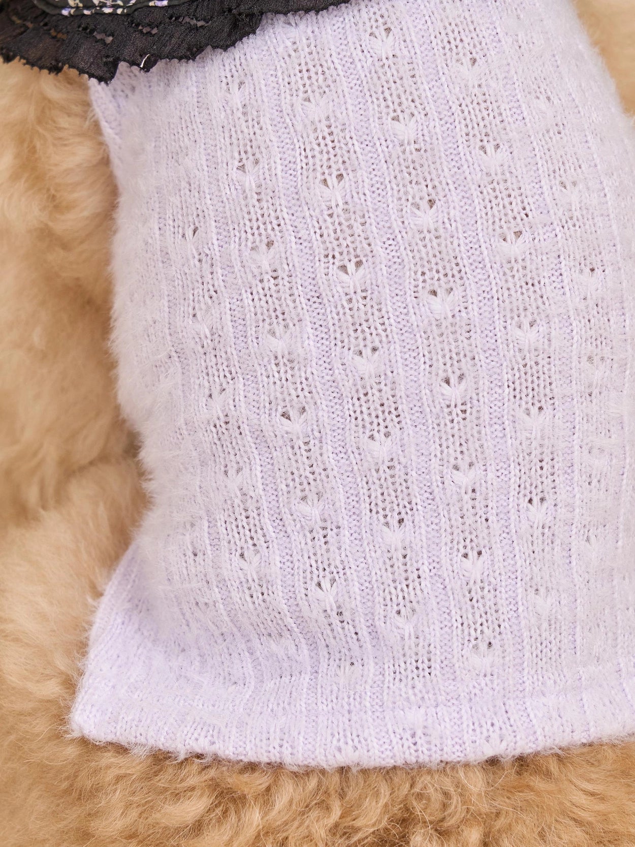 耐久性に優れたポリエステル素材にモヘアのような表情を持つパンチングニットで編まれた新素材です