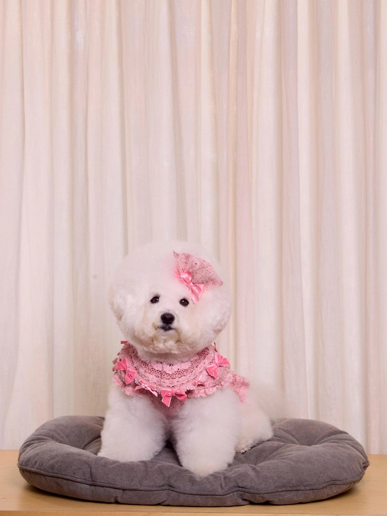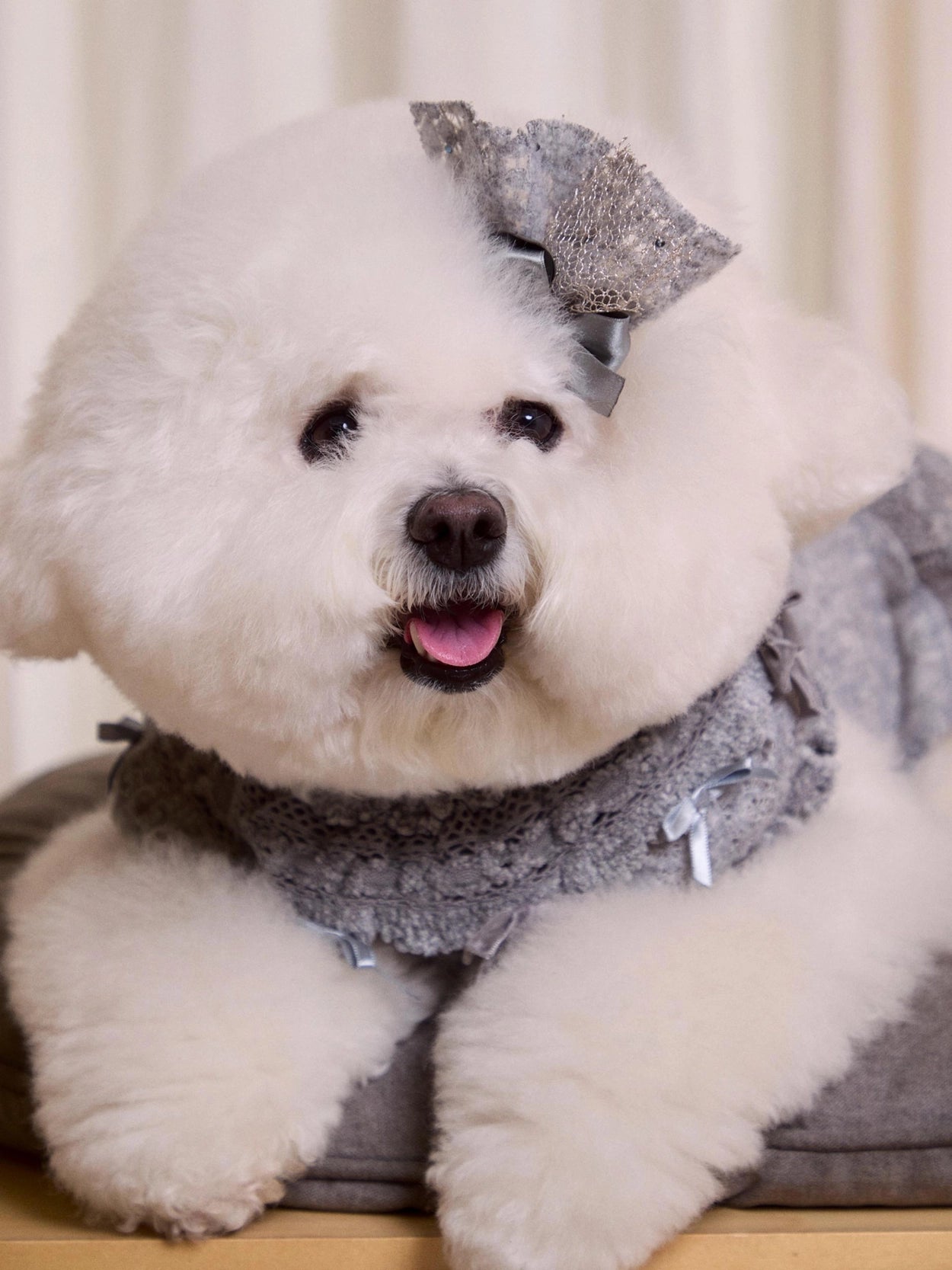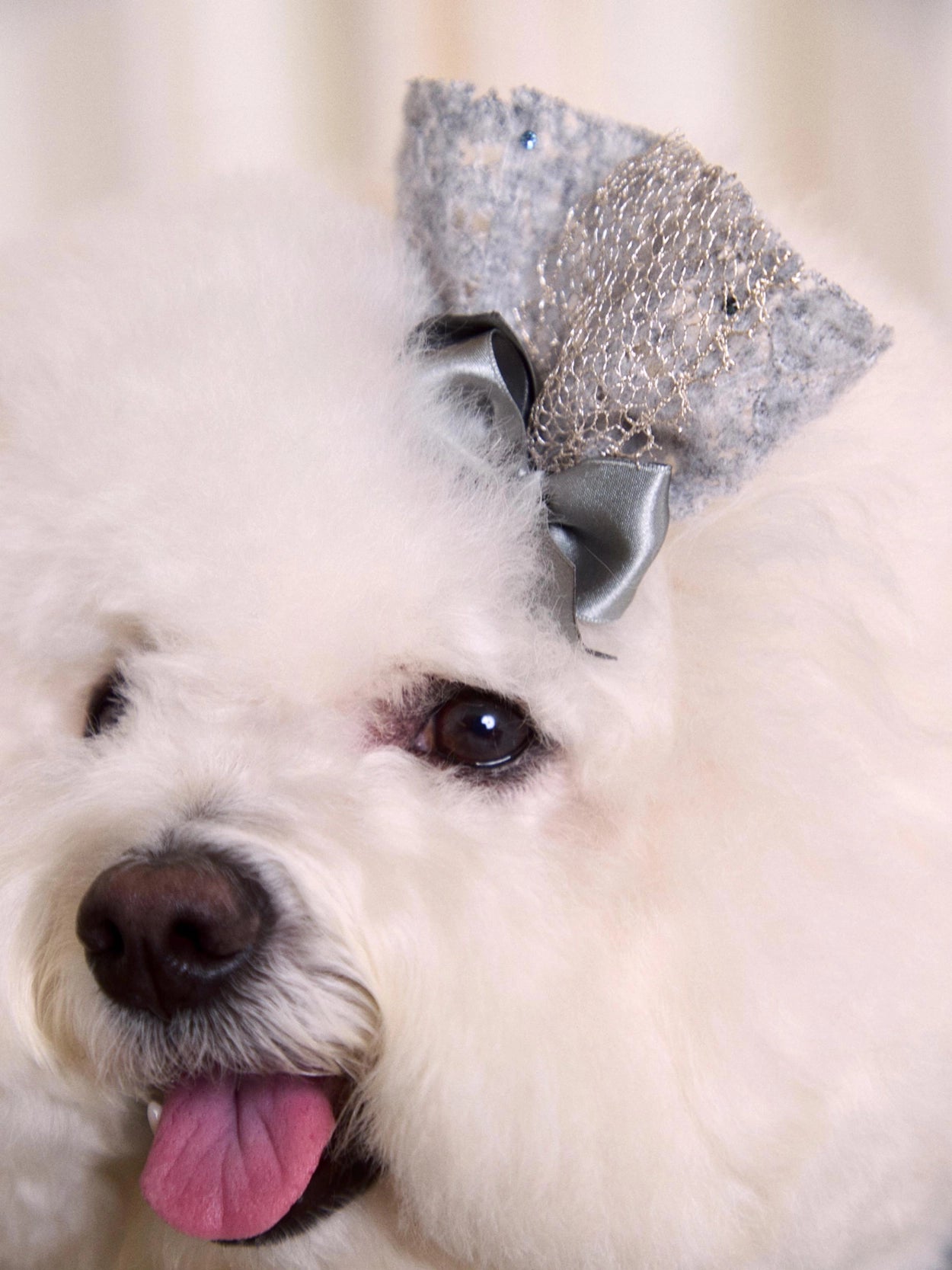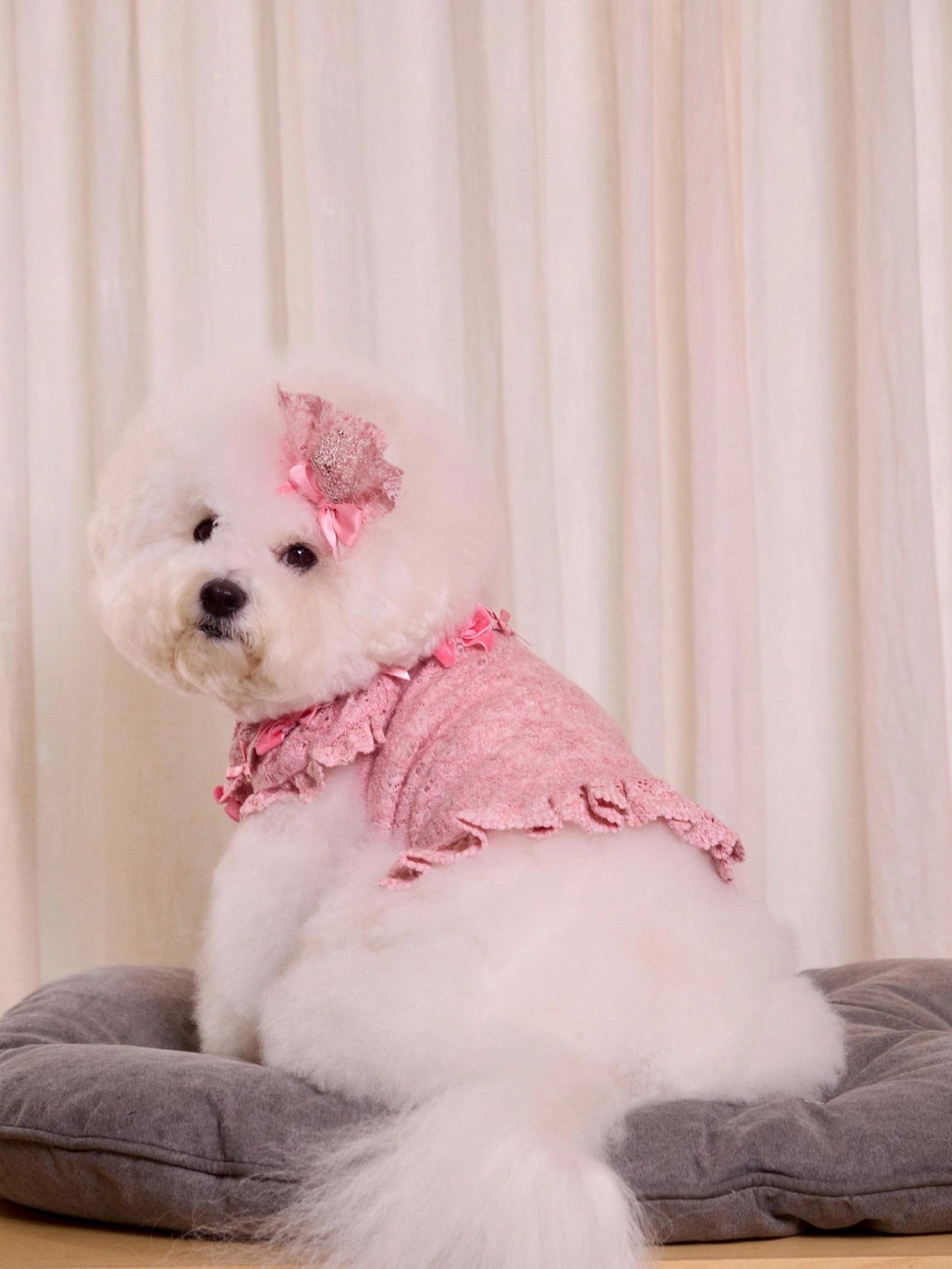 ドレスの豊かなレースボリュームを損なわないよう、