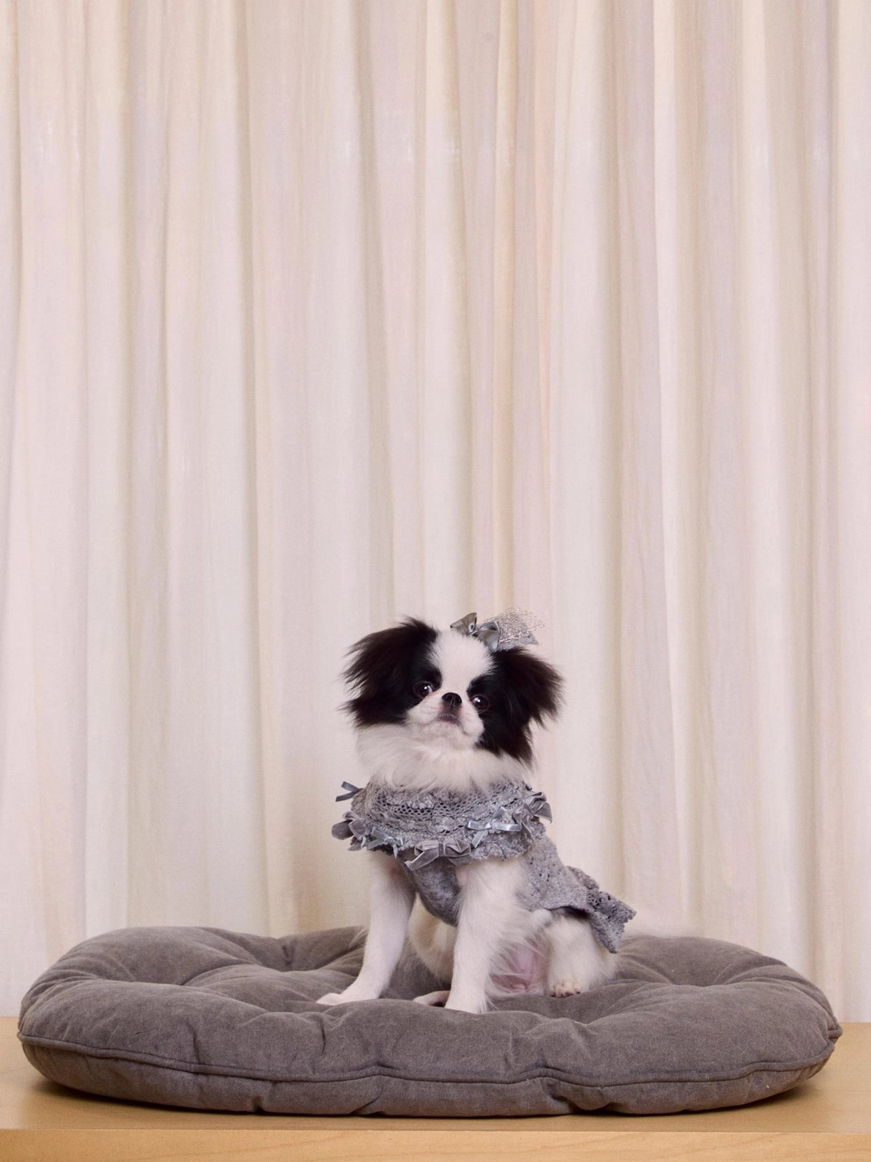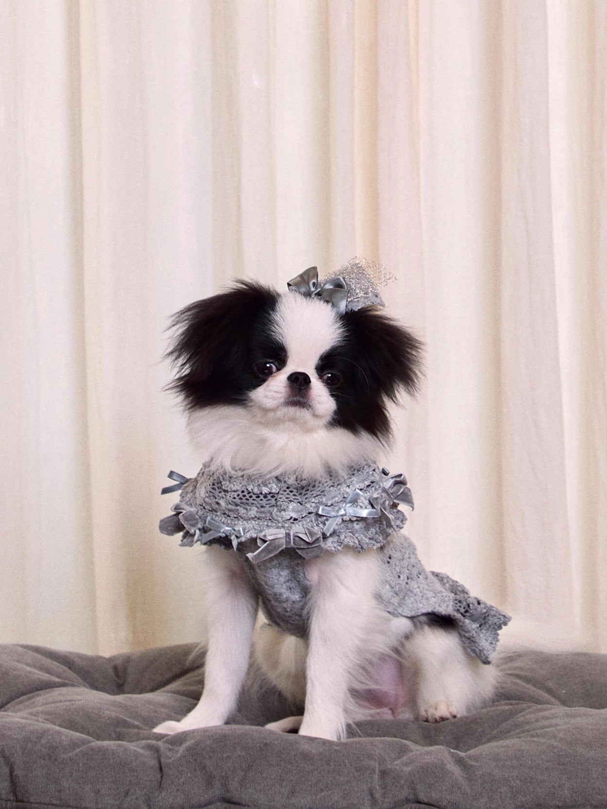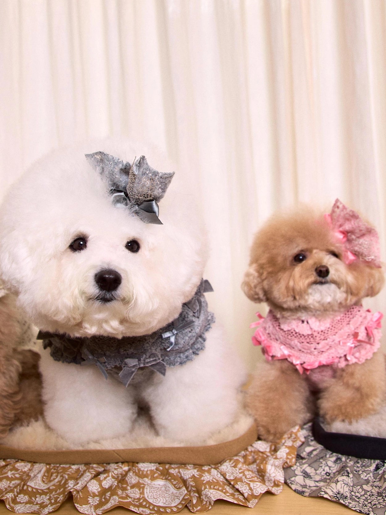 ドレスのトーンに合わせたベルベットとサテンのリボンをあしらいました