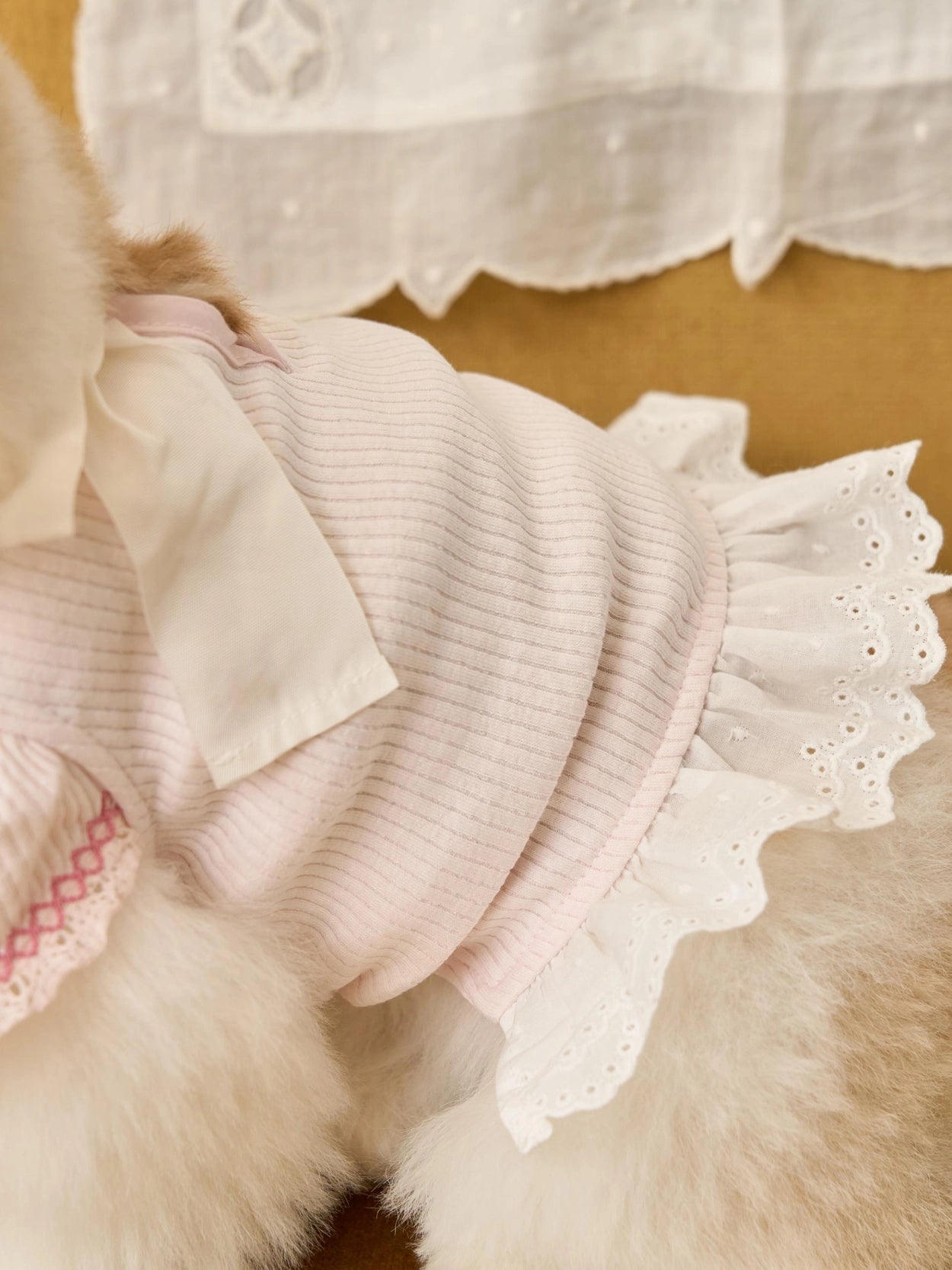 裾にはスカラップ刺繍のコットンレースをあしらいました