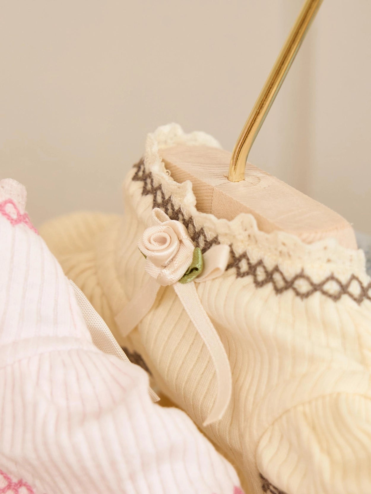 裾にはスカラップ刺繍のコットンレースをあしらいました